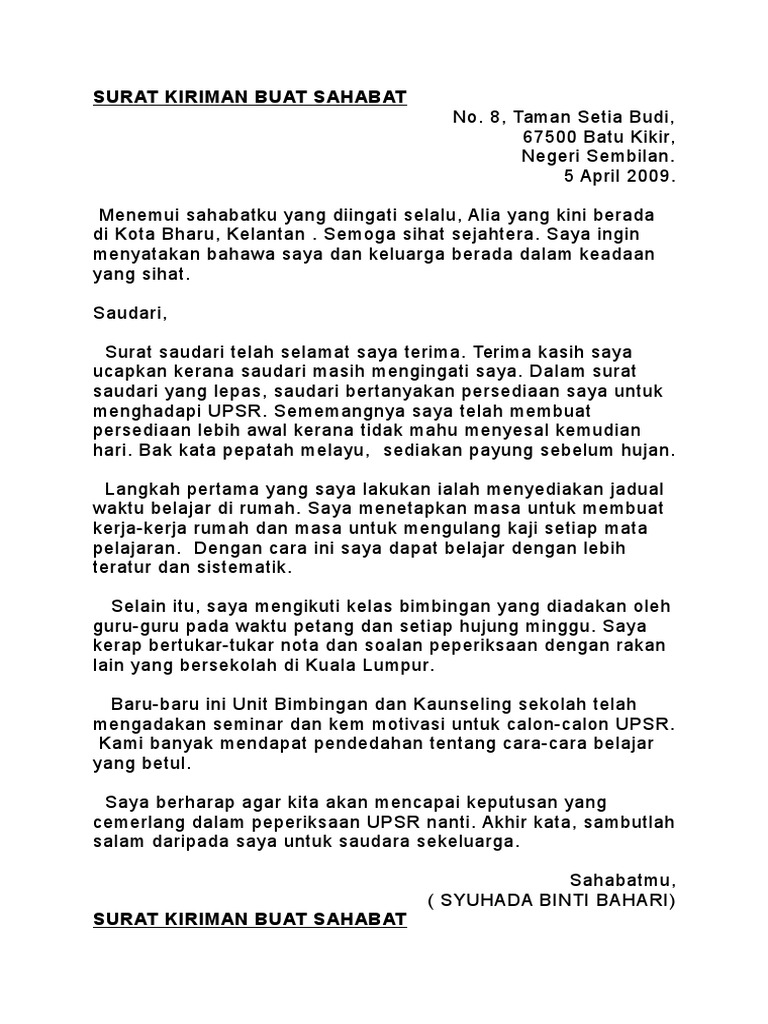Surat yang ditulis dengan tangan itu meminta agar S dan saudaranya kembali ke. Contoh Surat Untuk Sahabat. Sahabatmu di Jogja.