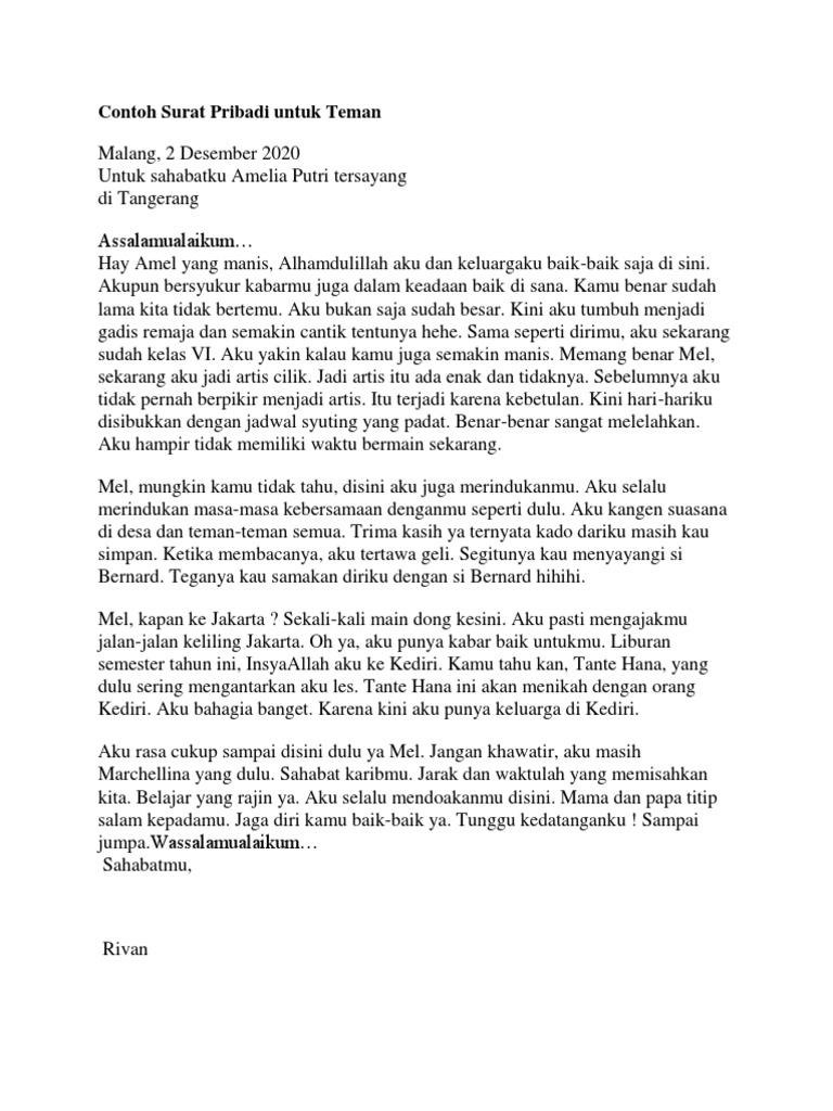Contoh Surat Pribadi Untuk Teman Pdf